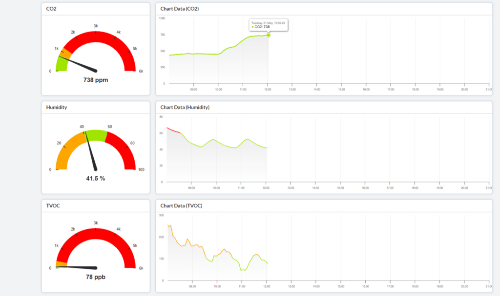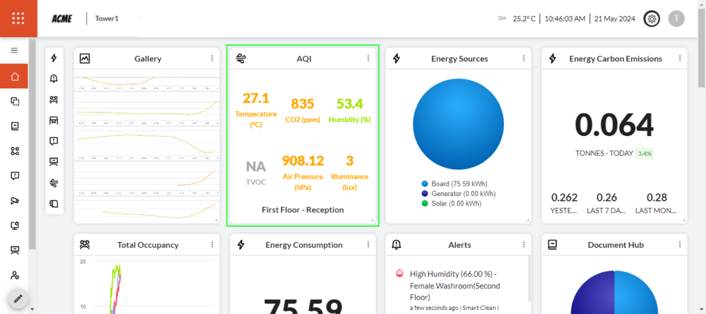 The dashboard’s Air Quality Index (AQI) components consist of a few parameters.