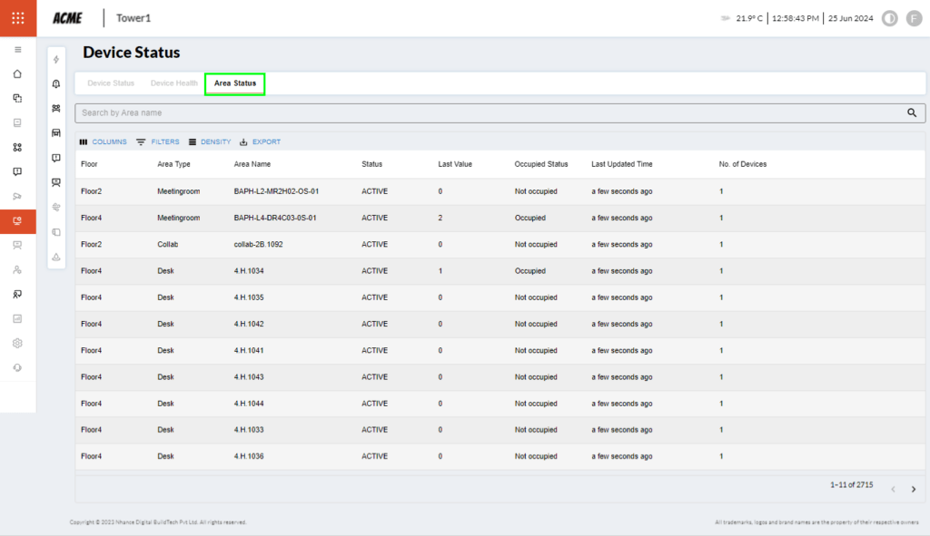 Clicking on the ‘Area Status’ (marked in green) tab will show you the following screen: