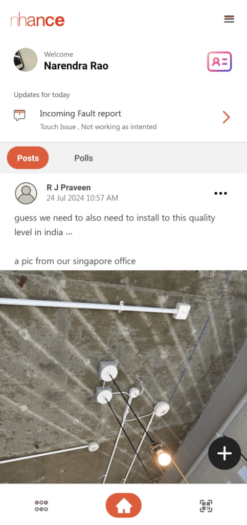 Employee App will help you book desks and meeting rooms, raise fault report/s, provide feedback, vote in polls, write posts, create and manage communities, invite visitors etc.