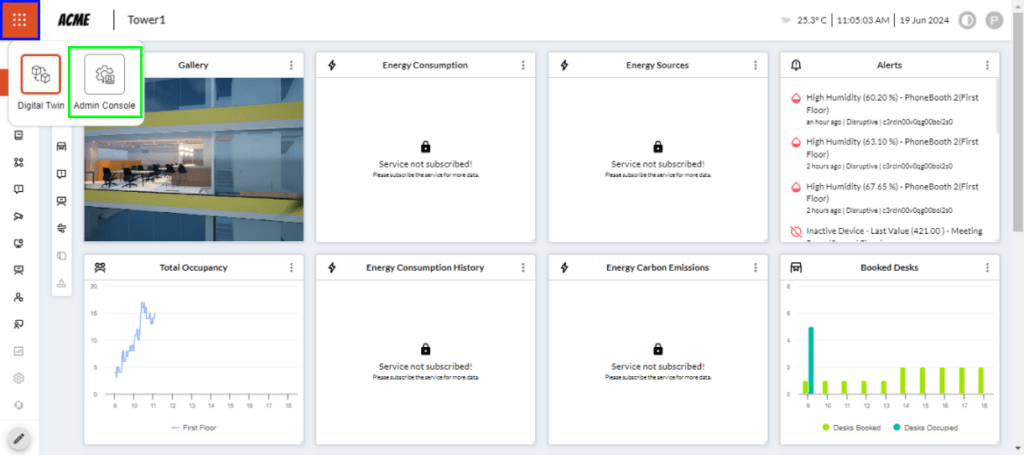 Login to the dashboard and click on the 9 dots (marked in blue), which will open the menu. Click on ‘Admin Console’ and then click on the ‘Wall’ icon in the menu to see the post details.