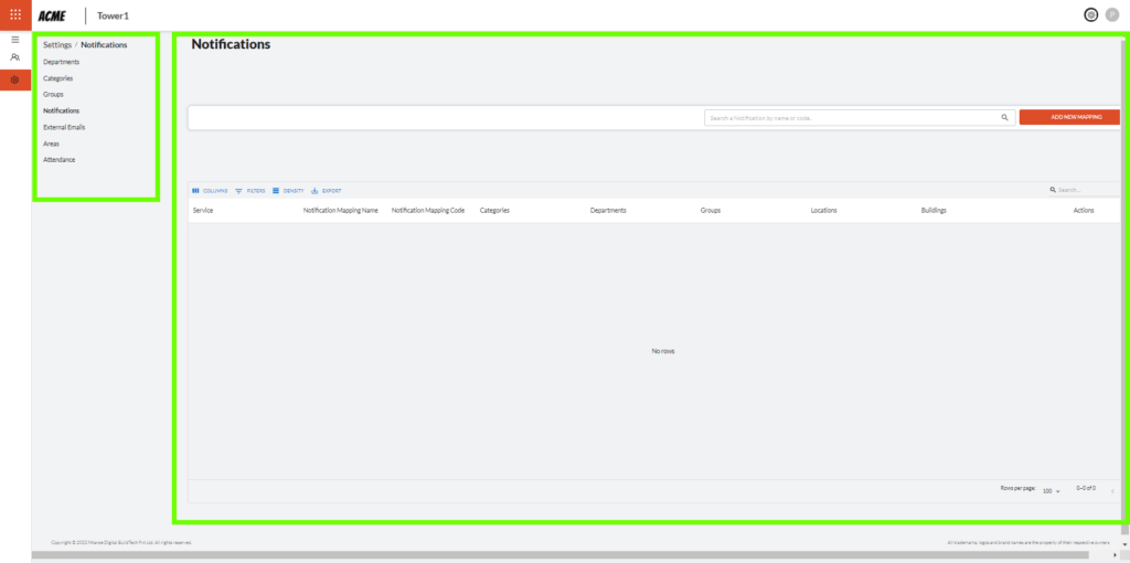 4.1 A notification mapping can be added by clicking the ‘Add New Mapping’ button, situated to the right of the search bar.