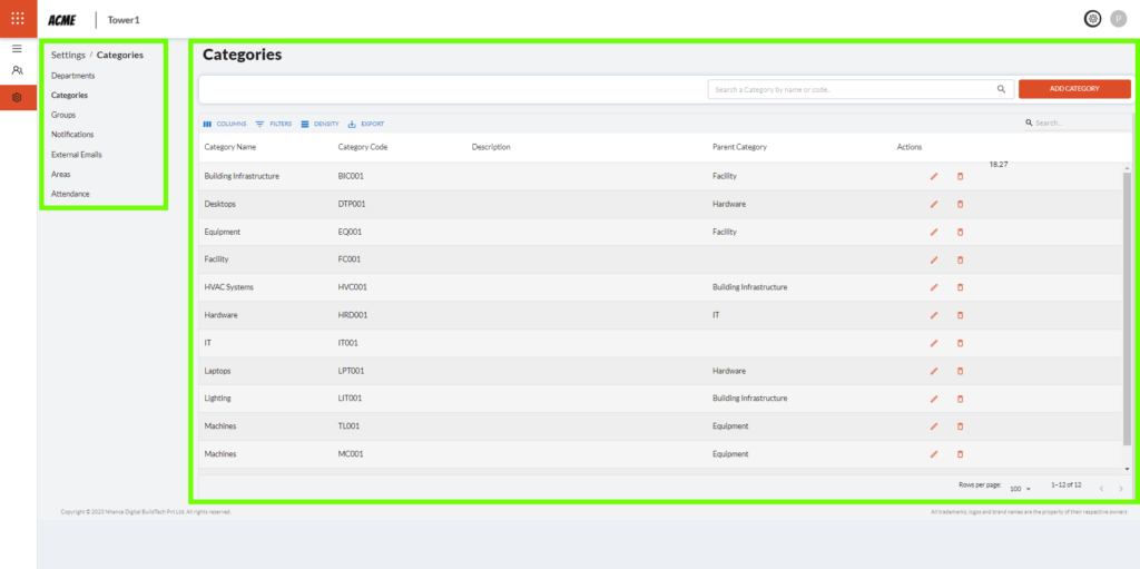 2. Categories – Similar to departments, Categories are used to assign Assets and faults for organizational purposes.