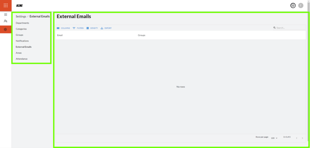 5. External emails – External emails refer to contact information of people outside the organization. This section allows monitoring of external groups and organizations to which the assets and faults are assigned.
