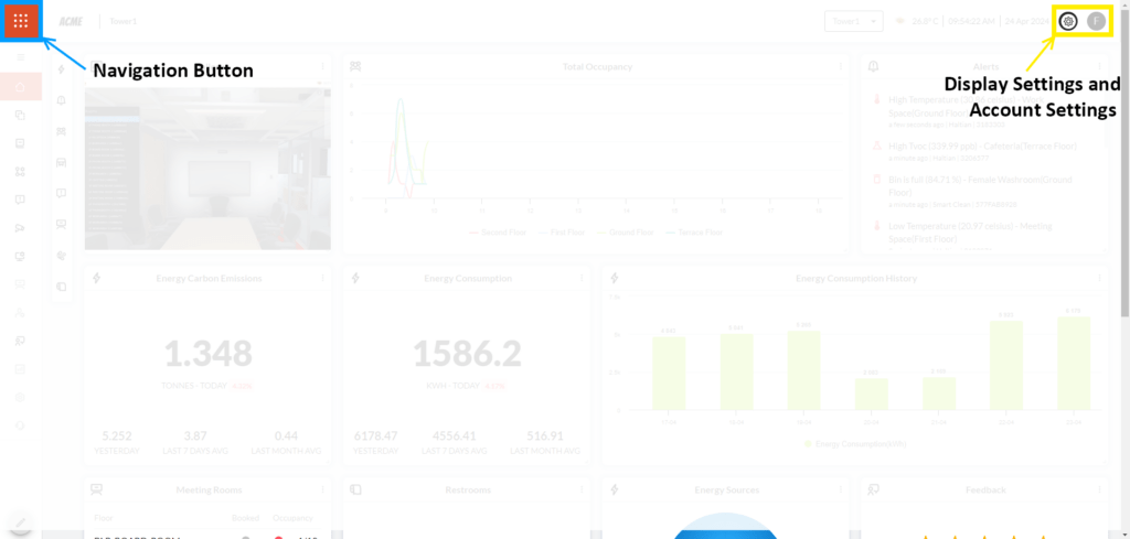 1.6 The Navigation button allows flipping between Admin Console and Digital Twin modes.