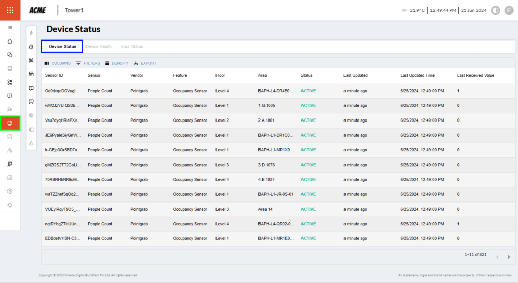 Clicking on the ‘Area Status’ (marked in green) tab will show you the following screen: