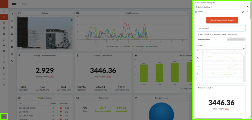 New dashboard templates can be added by selecting the ‘Add New Dashboard Template’.