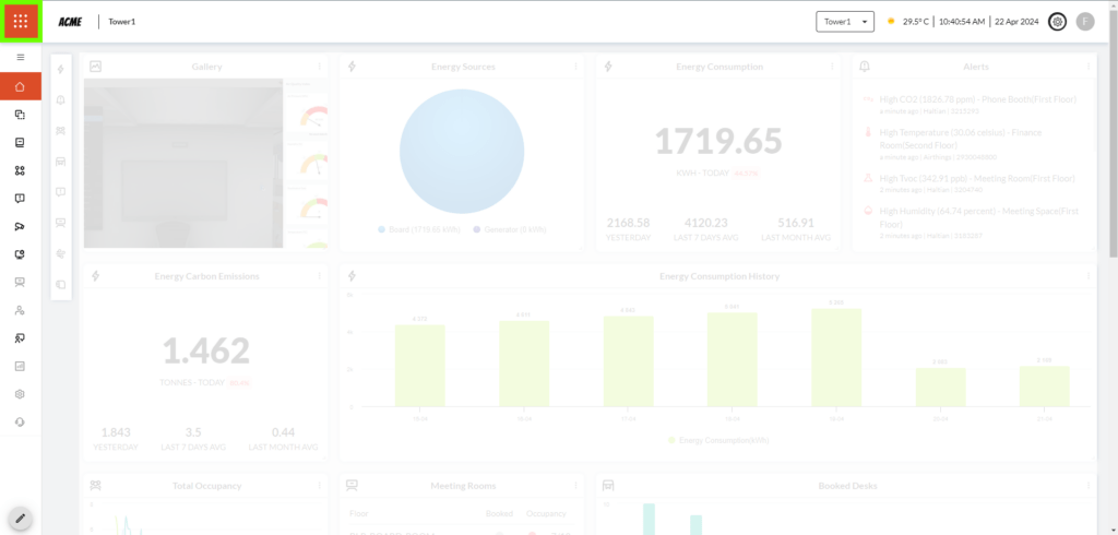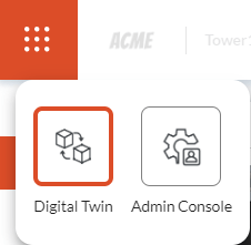 Clicking on the navigation button opens up a sub-menu that allows flipping between the Admin Console and Digital Twin modes.