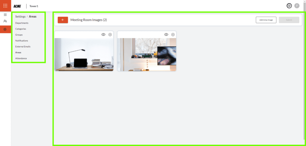 6. Areas – This section allows uploading and viewing images for/of an area.