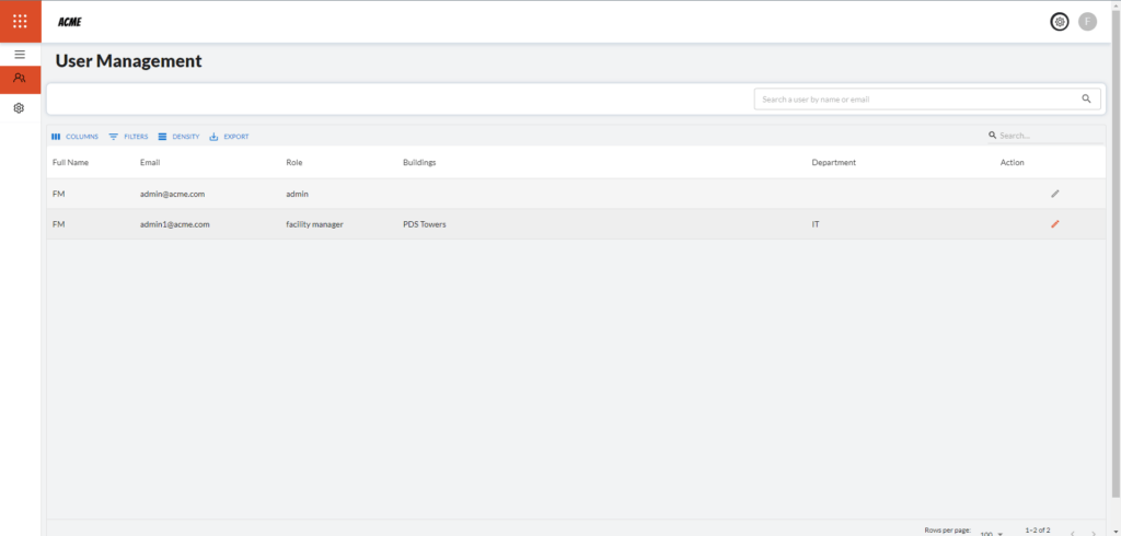 This screen features User Management that allows adding and editing access to employees to parts of the dashboard.