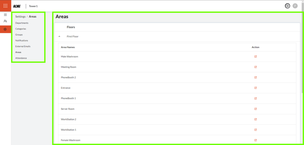 6.1 An area can be edited by clicking the icon in the ‘Action’ column.