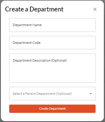 1.1 A department can be added by clicking the ‘Add Department’ button, situated to the right of the search bar.