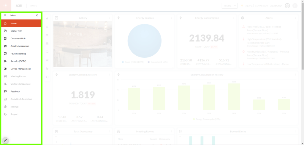 2.5.4 Asset Manager – The Asset Manager is a place where all assets in the office space are managed along with any and all faults reported with respect to any asset.