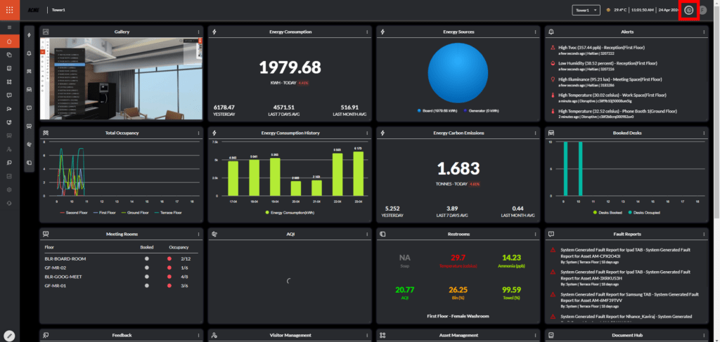You can switch between these themes by simply clicking on the gear icon (marked in red) at the top right corner of the dashboard, beside the user icon.