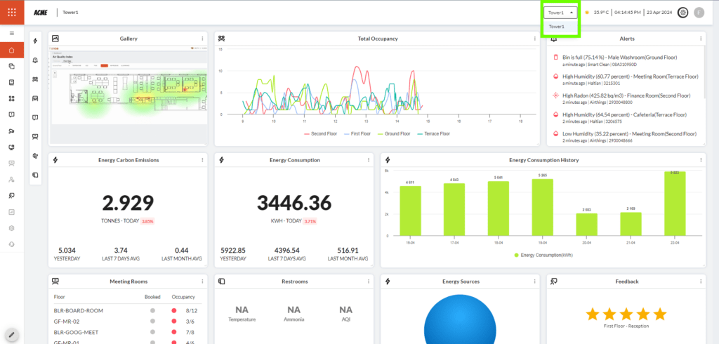 You can switch between properties by simply clicking on the dropdown beside the weather information and choosing between available properties. The dashboard will now represent the data of the newly selected property.